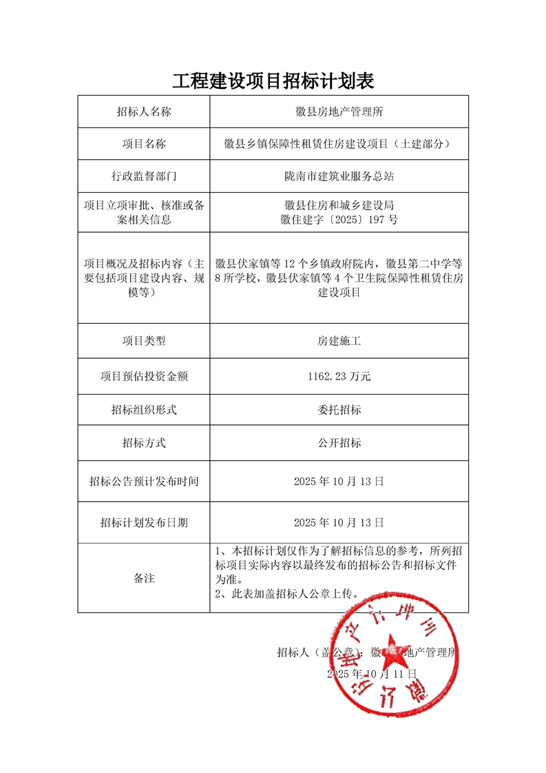徽县乡镇保障性租赁住房建设项目(土建部分)