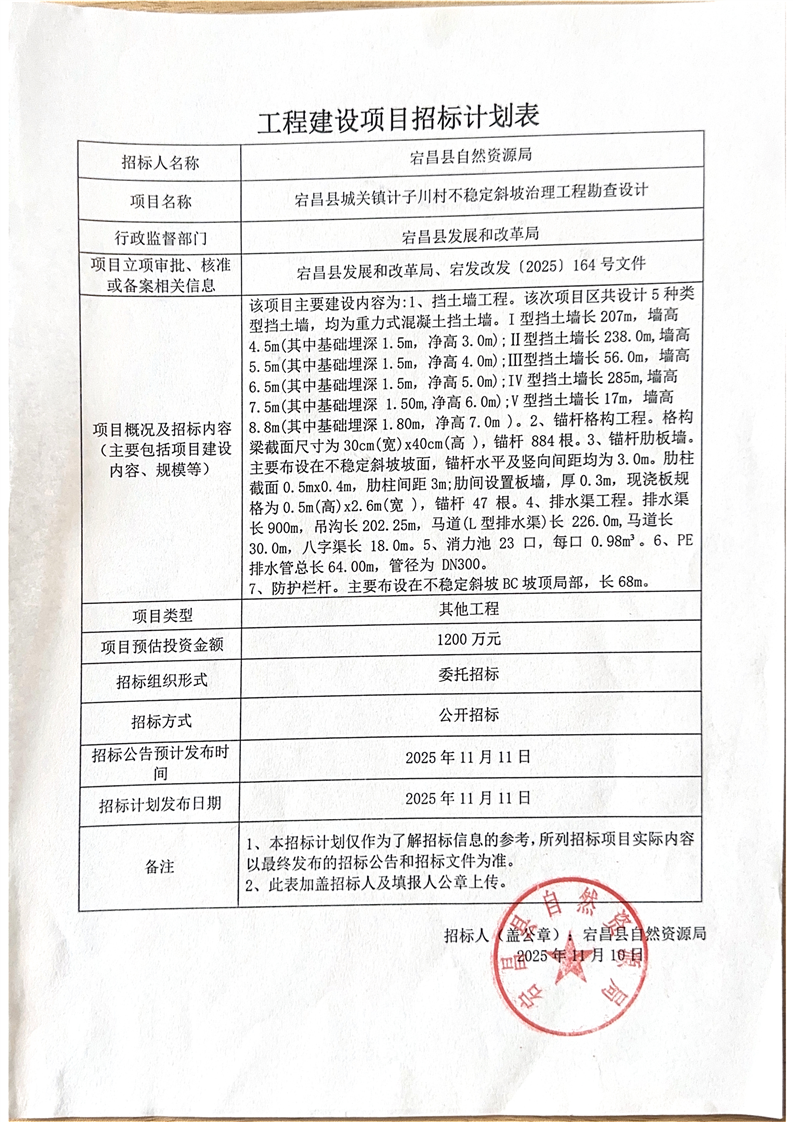 宕昌县城关镇计子川村不稳定斜坡治理工程勘查设计