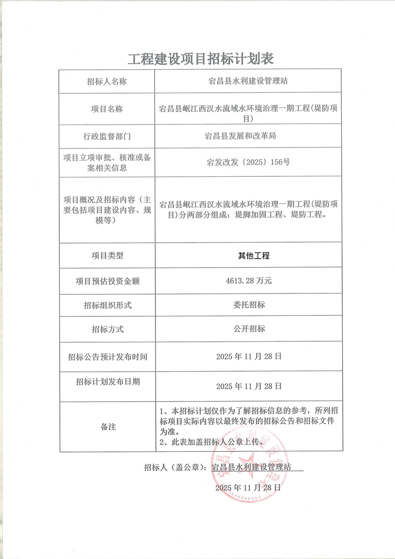 项目招标计划