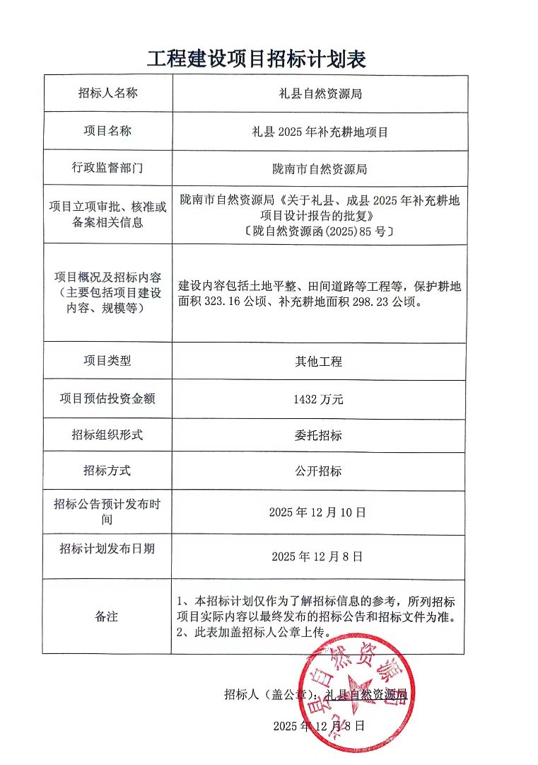 礼县2025年补充耕地项目