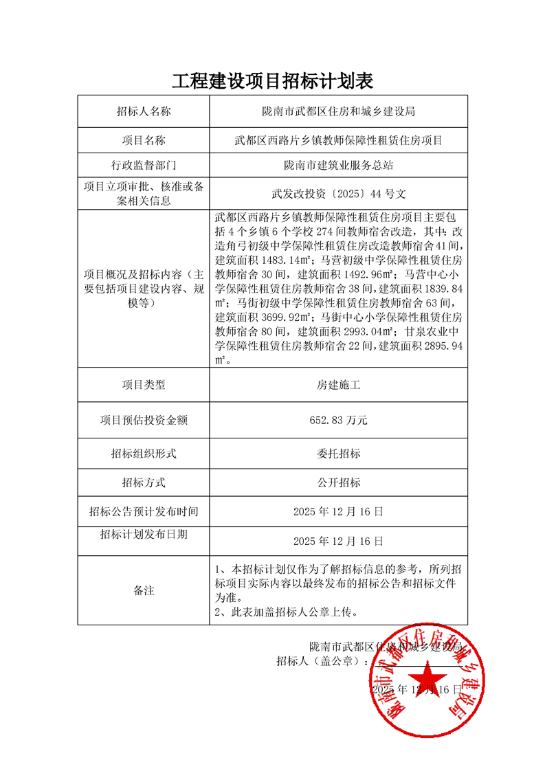 武都区西路片乡镇教师保障性租赁住房项目