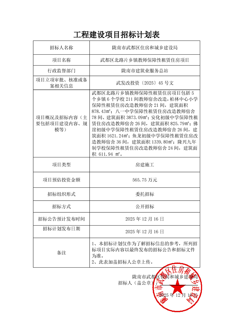 武都区北路片乡镇教师保障性租赁住房项目