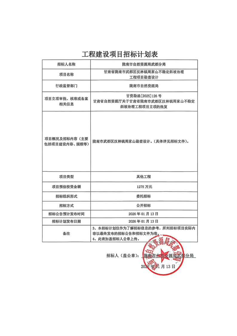 陇南市武都区汉林镇周家山不稳定斜坡治理工程项目勘查设计