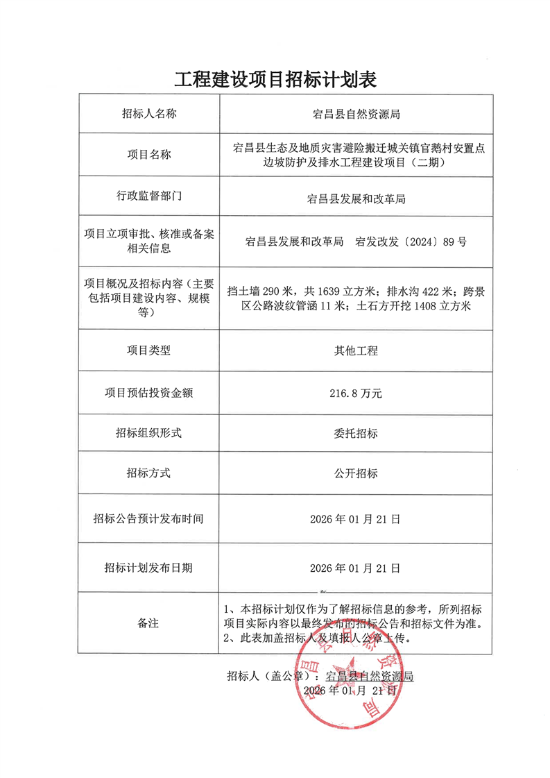 项目招标计划