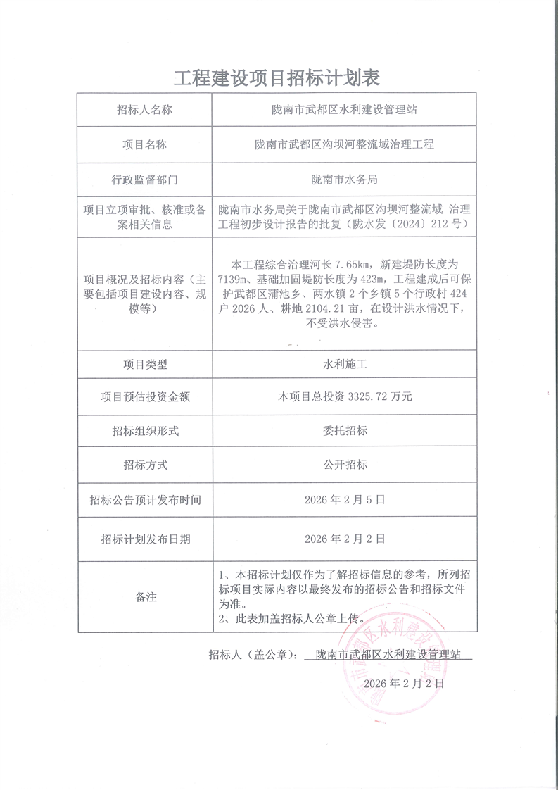 项目招标计划