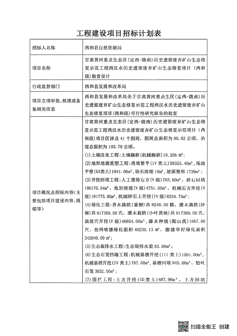甘肃黄河重点生态区(定西-陇南)历史遗留废弃矿山生态修复示范工程西汉水历史遗留废弃矿山生态修复项目 (西和段)勘查设计