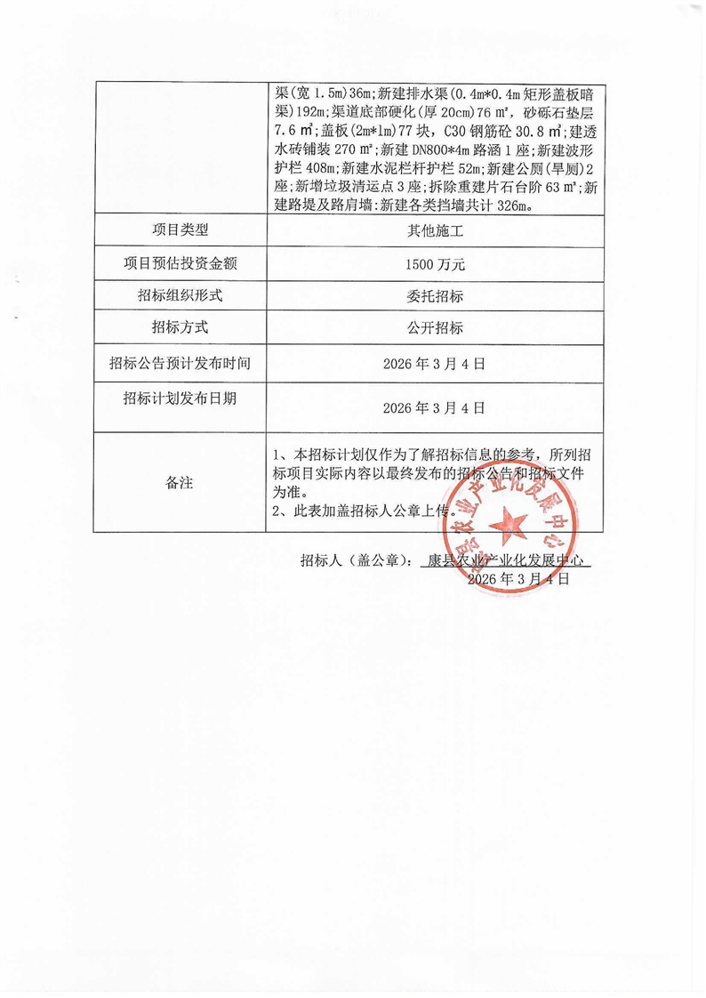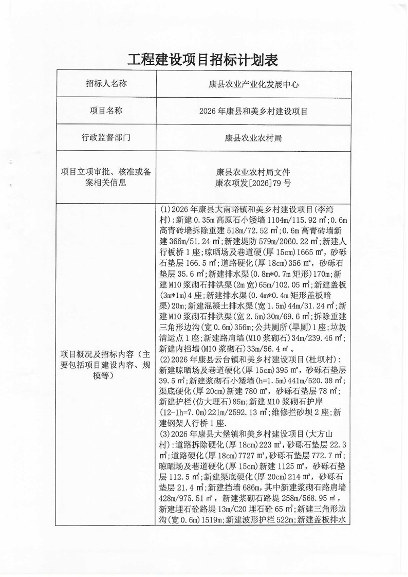 2026年康县和美乡村建设项目