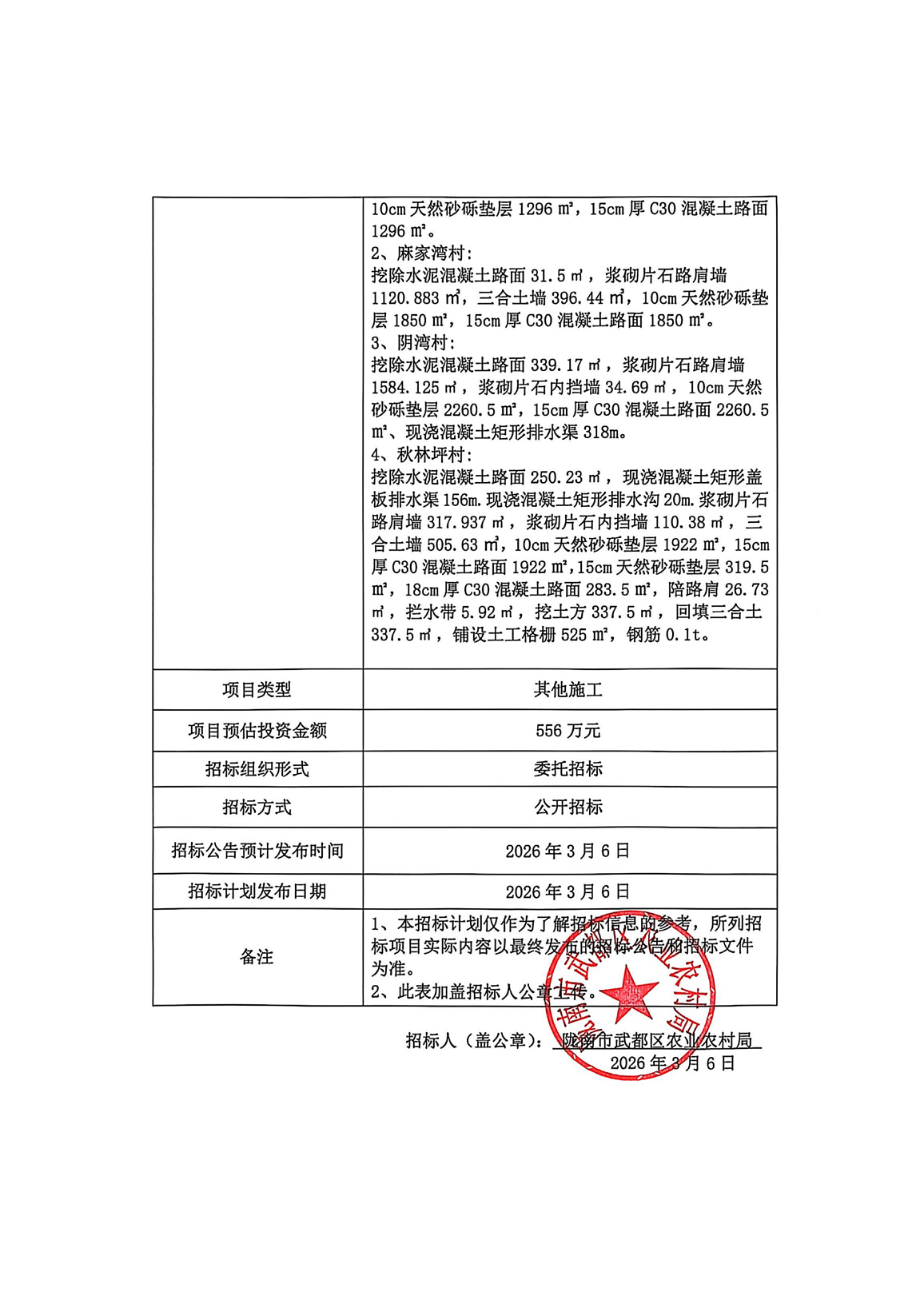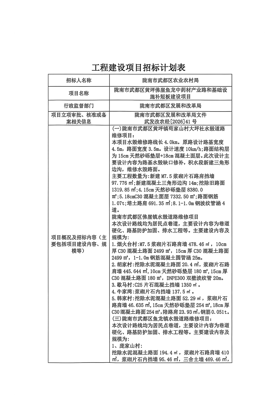 陇南市武都区黄坪佛崖鱼龙中药材产业路和基础设施补短板建设项目