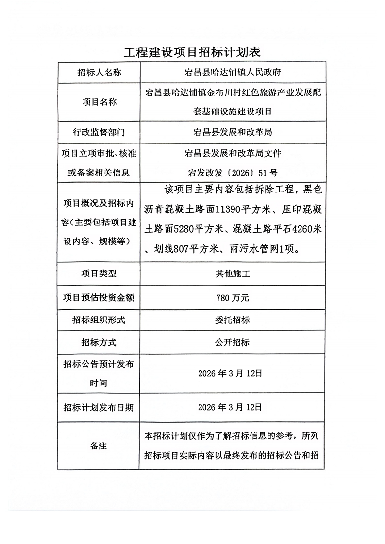 宕昌县哈达铺镇金布川村红色旅游产业发展配套基础设施建设项目