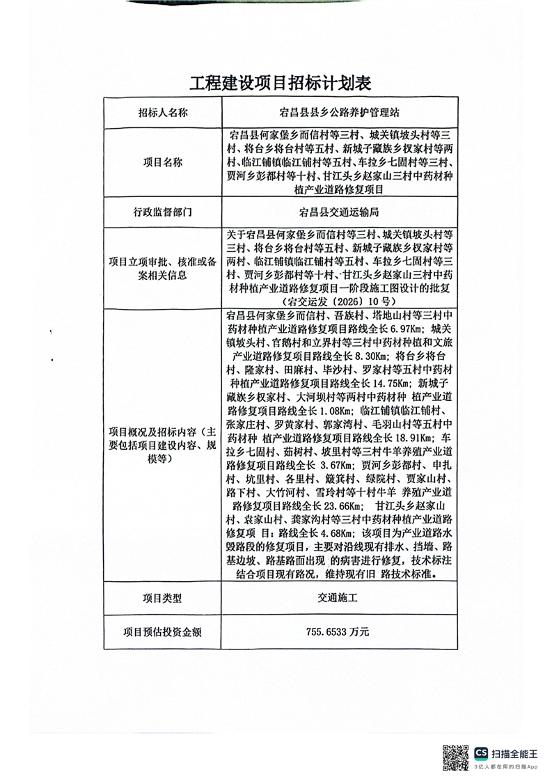 宕昌县何家堡乡而信村等三村、城关镇坡头村等三村、将台乡将台村等五村、新城子藏族乡杈家村等两村、临江铺镇临江铺村等五村、车拉乡七固村等三村、贾河乡彭都村等十村、甘江头乡赵家山三村中药材种植产业道路修复项目