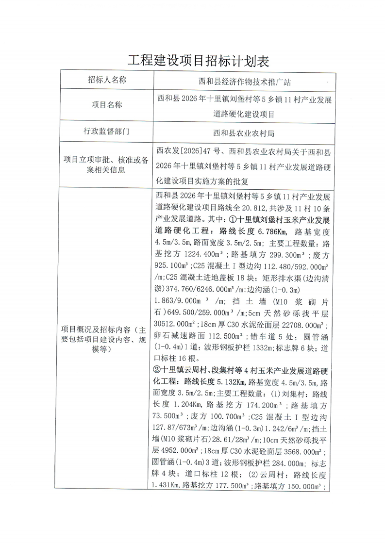 西和县2026年十里镇刘堡村等5乡镇11村产业发展道路硬化建设项目