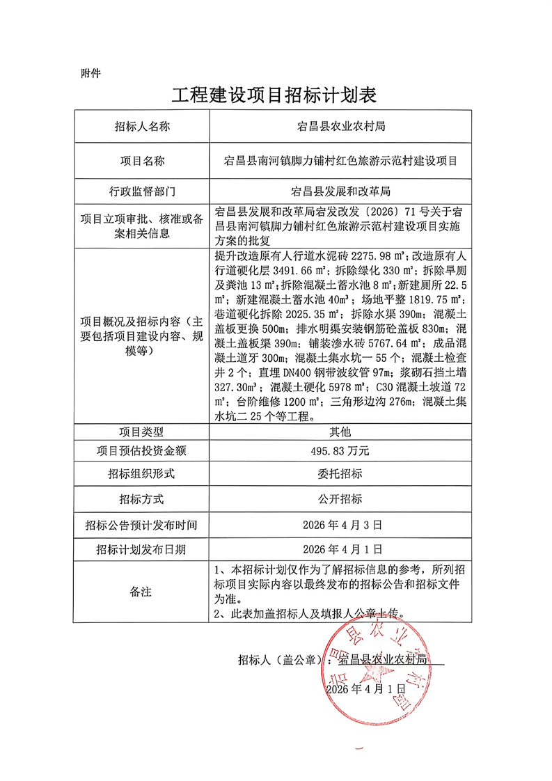 宕昌县南河镇脚力铺村红色旅游示范村建设项目