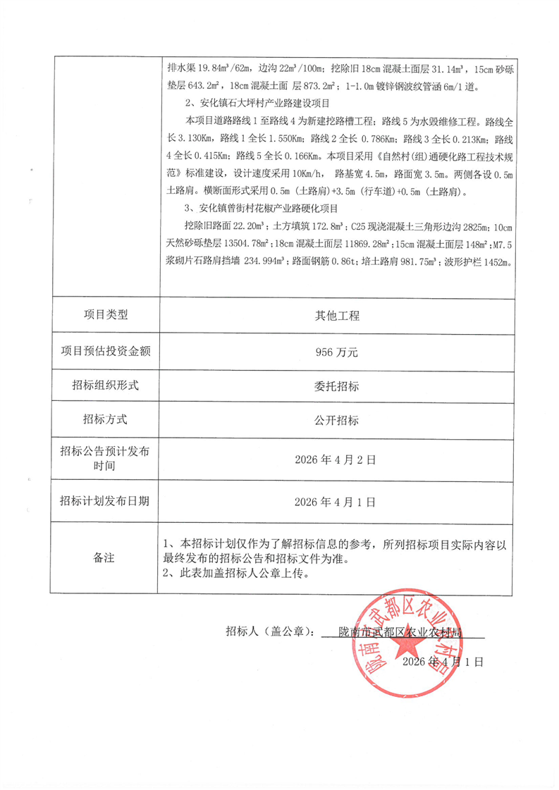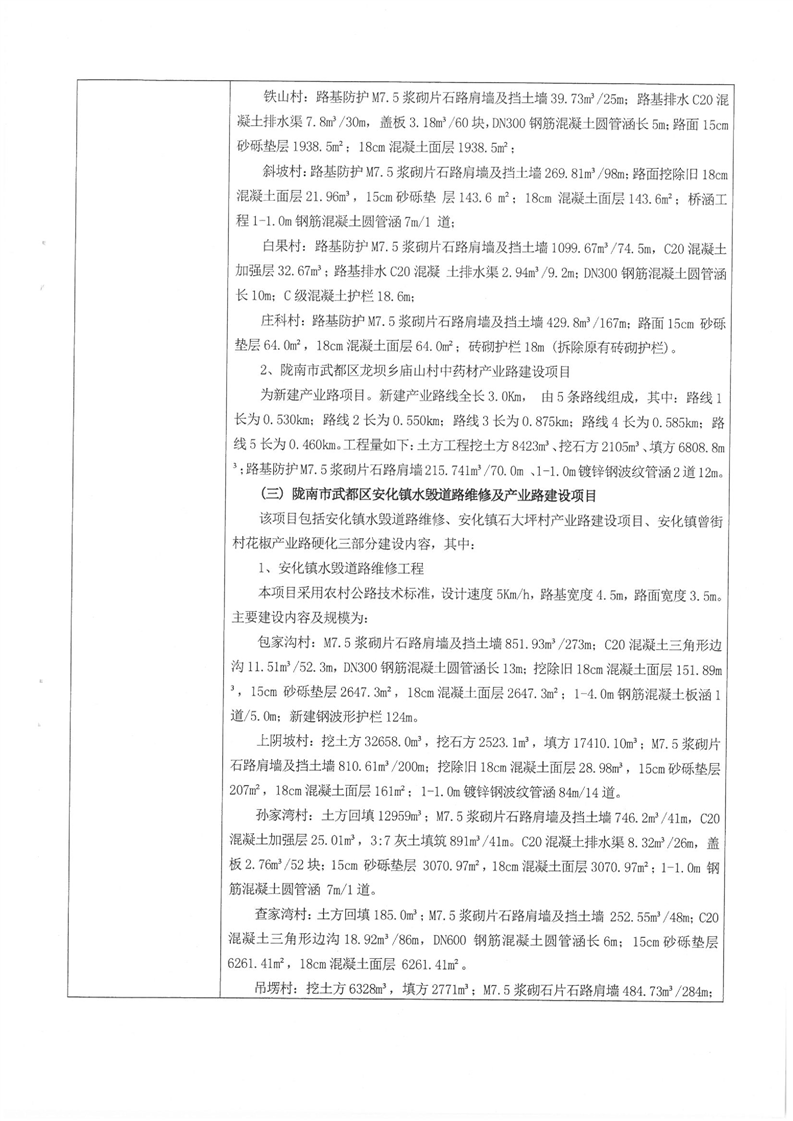 陇南市武都区隆兴龙坝安化中药材产业路和基础设施补短板建设项目