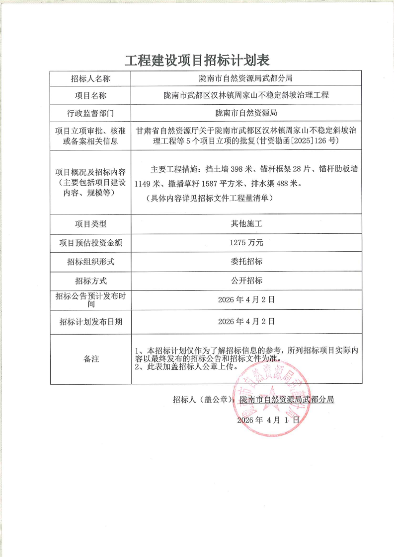 陇南市武都区汉林镇周家山不稳定斜坡治理工程