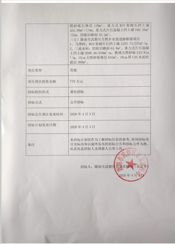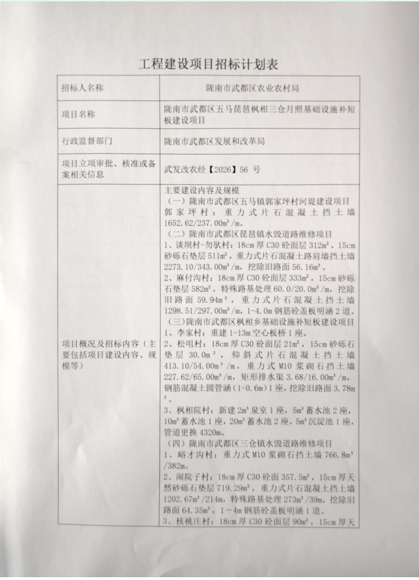 陇南市武都区五马琵琶枫相三仓月照基础设施补短板建设项目