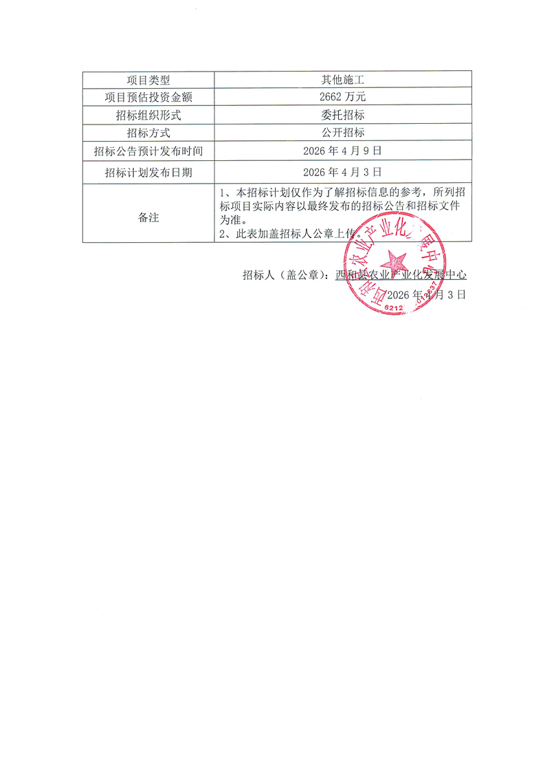 项目招标计划
