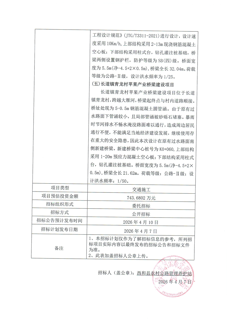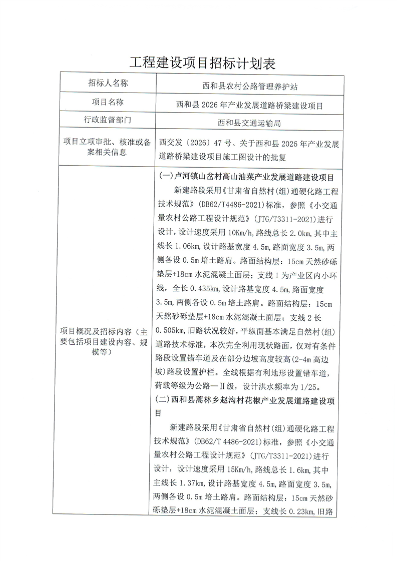 西和县2026年产业发展道路桥梁建设项目