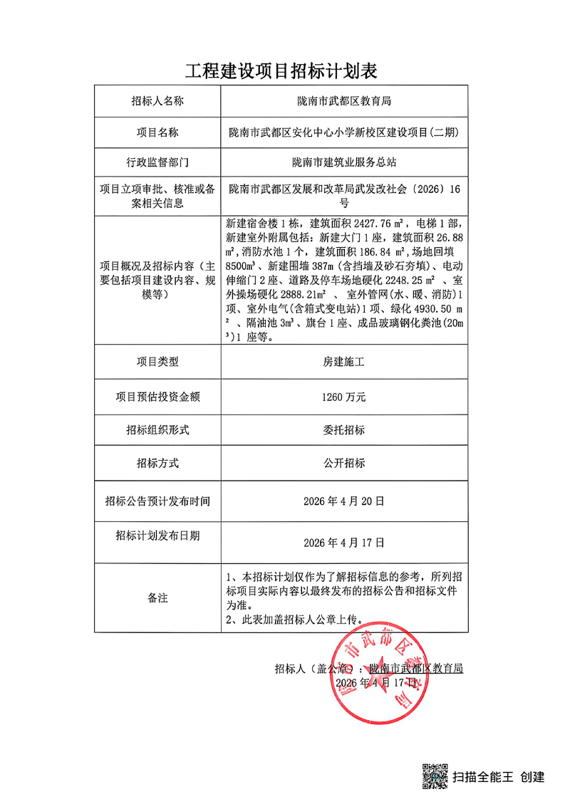 陇南市武都区安化中心小学新校区建设项目(二期)